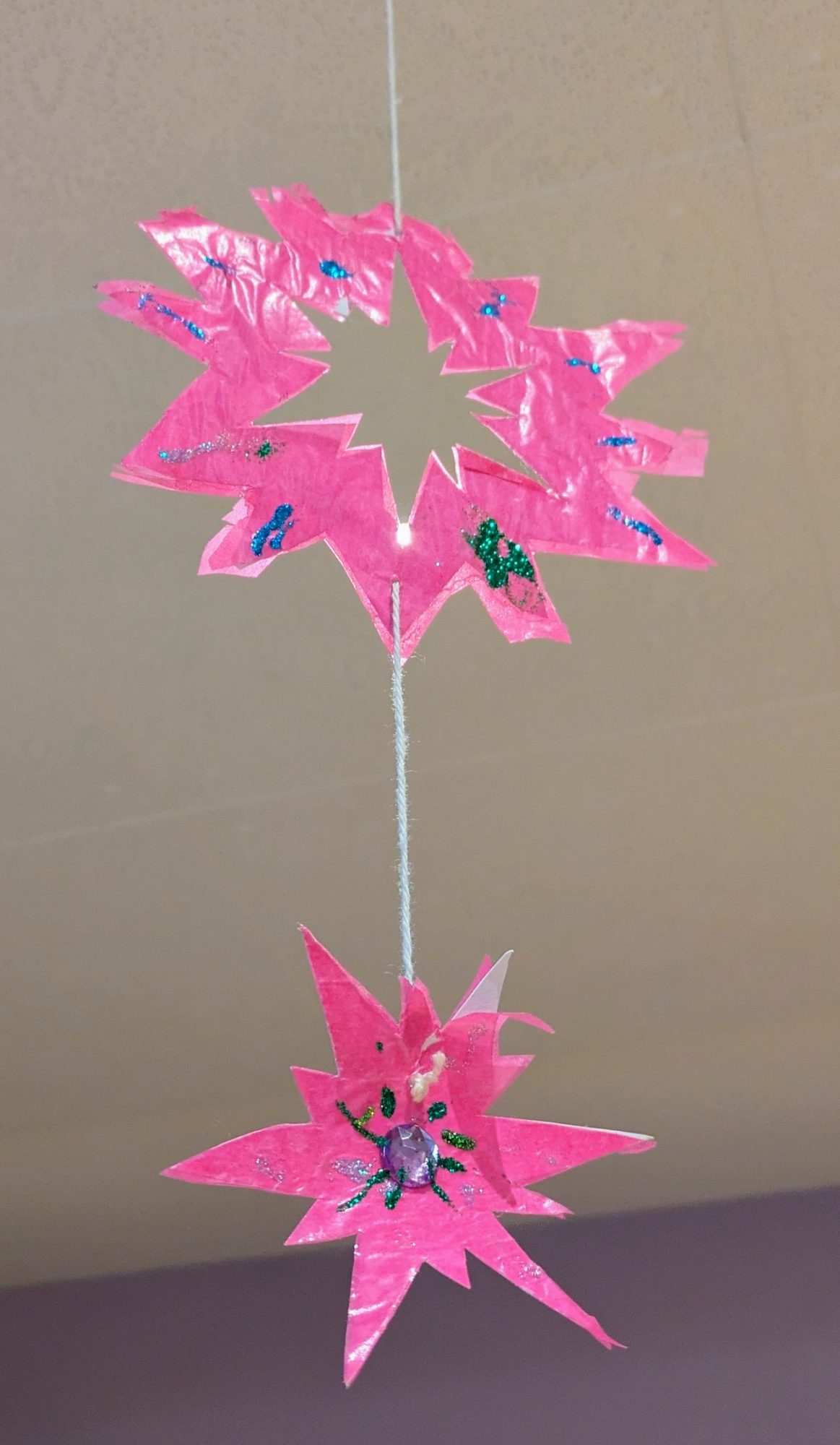Die Bastelstunden waren nicht nur eine Gelegenheit zur kreativen Entfaltung, sondern auch eine Möglichkeit, die Gemeinschaft zu stärken. Mit buntem Papier, Scheren, Kleber und Glitzer haben die Kinder wunderschöne Sterne kreiert, die nun unseren Raum festlich schmücken. Jeder Stern erzählt eine eigene Geschichte und spiegelt die Fantasie der kleinen Künstler wider.