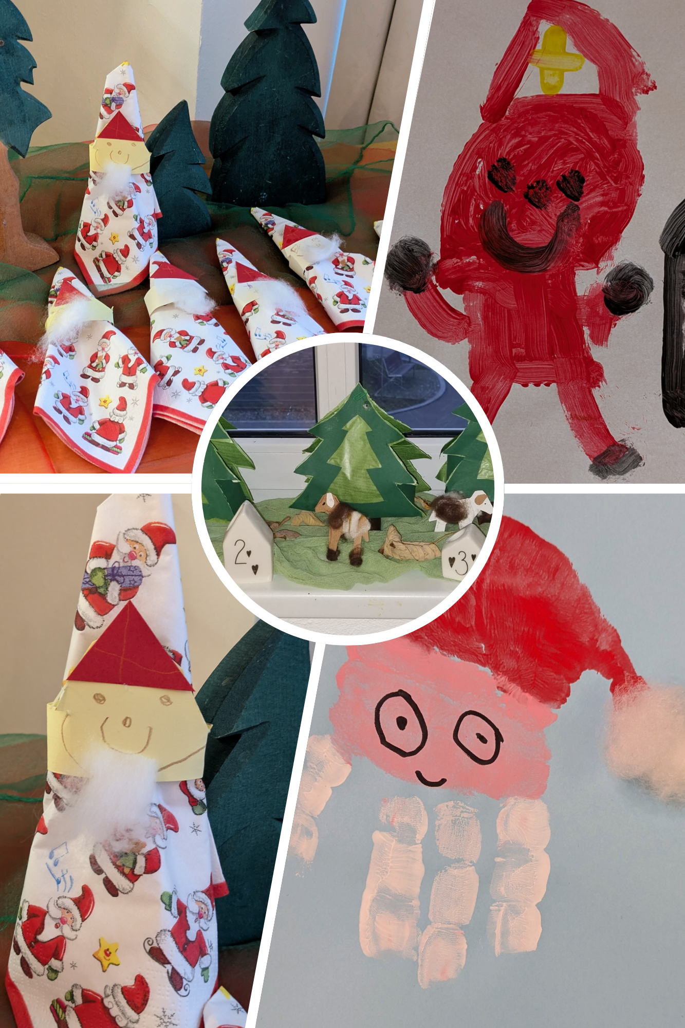 Zusätzlich haben die Kinder Nikolausfiguren gebastelt und Wichtel getöpfert, die als Dekoration oder Geschenk dienen. Basteln fördern gleichzeitig die motorischen Fähigkeiten und das koordinierte Arbeiten mit anderen, während sie spielerisch die Brauchtümer der Adventszeit kennenlernen.