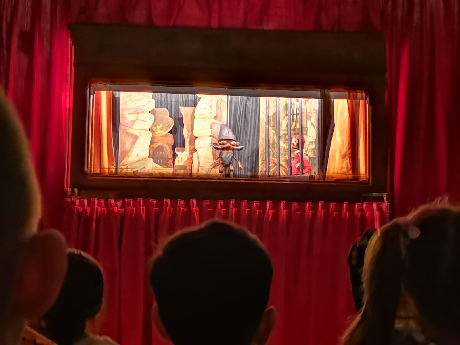 Die Puppenspielerin Franka Kilger begeisterte die Kinder mit ihren ausdrucksstarken Figuren und der winterlichen Märchenkulisse. Nach der Vorstellung nahm sie sich viel Zeit, um die zahlreichen Fragen der Kinder zu beantworten, ihre Puppen zu zeigen und einen spannenden Einblick in die Bühnentechnik zu geben.